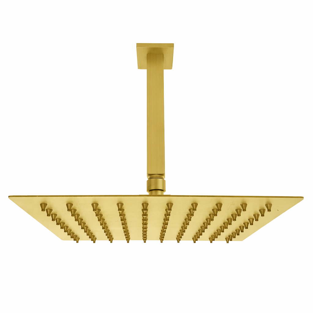 * Ducha articulável medindo 20cm x 20cm e braço de chuveiro quadrado de 40cm, sendo a ducha fabricada em liga de cobre e o braço em alumínio, ambos pintados com tintura termofixa: durabilidade, resistência e produto livre de ferrugem;