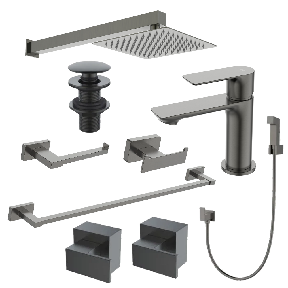 - Chuveiro Quadrado Slim 20x20 Com Braço De Parede Grafite - Jiwi – WJ-DC-20-Q-CZEWJ-BCP-Q-CZ